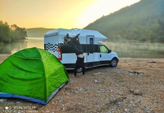 Yatak Alanı - Karavanımızda iki adet yatak bulunmaktadır. Biri salon kısmında bulunan yemek masasının aşağıya indirilerek 2 Kişilik 190cm x 130cm bir diğeri araç şöfor mahalinin üstünde kalan kısımda 1 yetişkin veya 2 Çocuk 185 x 90 cm